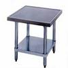 Equipment Stand^ Made of 14-gauge, type 304 stainless steel. Adjustable 18-gauge stainless steel undershelf. 4.1cm diameter legs constructed of 16-gauge tubular stainless steel. Unassembled. 61Hx76Wx76Lcm. Weight: 35kg. Non-drip countertop. 12.7cm swivel casters with rubber tires, two with brakes.