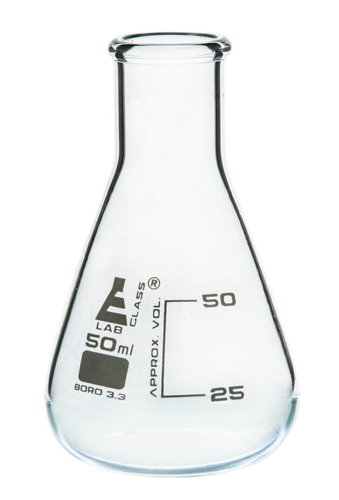 Erlenmeyer Flask, Narrow Neck, High quality borosilicate 3.3 glass Erlenmeyer Flask with narrow neck design., Each