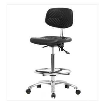 ESD/Clean Room Polyurethane High Bench Height Chair with Chrome Base, Chrome Foot Ring, No Tilt, No Arms, ESD Glides, Each