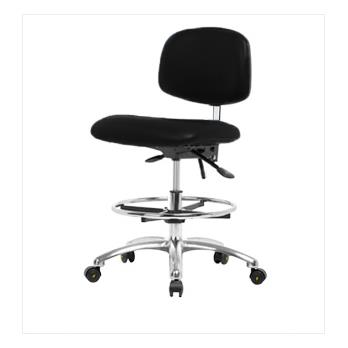Our Clean Room/ESD chairs have been tested to Fed Std.209E, ISO 14644-1 (Class100/ISO Class 5), and ANSI/ESD-STM-12.1-2006 standards and feature proper grounding, conductive, and dissipative static control materials. Optional 6-way adjustable arm rests support a variety of arm placements for proper ergonomics. Additional ergonomic benefits include a contoured waterfall seat cushion and an adjustable back rest with lumbar support for increased comfort during extended sitting durations. Vinyl Clean Room/ESD chairs are constructed of highly durable molded polyurethane foam cushioning covered with easily cleaned static-dissipating vinyl available in either blue or black. Optional seat tilt provides 8° forward and 3° backward locking tilt for ergonomic posture support. Twenty-inch diameter chrome foot rings are available. These high bench height chairs feature your choice of ESD casters or ESD glides on a polished cast aluminum base. Each ergonomic chair is backed by our 15-year warranty, lifetime on the pneumatic lift.Chairs shipping to California or Massachusetts may be subject to state mandated fire treatment and may be subject to an up-charge.Visit our seating website www.thomaschair.com to view all available options, specs and for easy ordering!