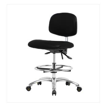 Our Clean Room/ESD chairs have been tested to Fed Std.209E, ISO 14644-1 (Class100/ISO Class 5), and ANSI/ESD-STM-12.1-2006 standards and feature proper grounding, conductive, and dissipative static control materials. Optional 6-way adjustable arm rests support a variety of arm placements for proper ergonomics. Additional ergonomic benefits include a contoured waterfall seat cushion and an adjustable back rest with lumbar support for increased comfort during extended sitting durations. Vinyl Clean Room/ESD chairs are constructed of highly durable molded polyurethane foam cushioning covered with easily cleaned static-dissipating vinyl available in either blue or black. Optional seat tilt provides 8° forward and 3° backward locking tilt for ergonomic posture support.. Optional 20-inch diameter chrome foot rings are available. These medium bench height chairs feature your choice of c ESD casters or ESD glides on a polished cast aluminum base. Each ergonomic chair is backed by our 15-year warranty, lifetime on the pneumatic lift.Chairs shipping to California or Massachusetts may be subject to state mandated fire treatment and may be subject to an up-charge.Visit our seating website www.thomaschair.com to view all available options, specs and for easy ordering!