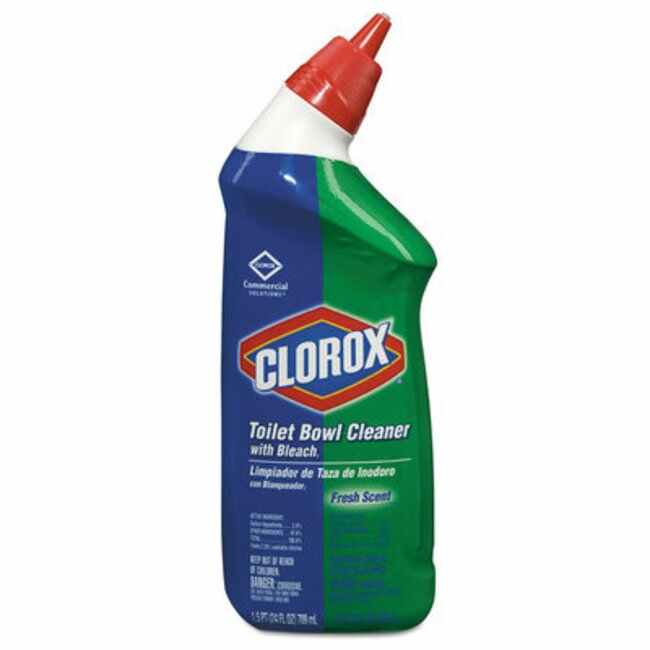 Clorox Toilet Bowl Cleaner is a thick, nonacid gel formula powered with Clorox bleach. Removes stains and deodorizes as it cleans. Angled neck design for easy under rim cleaning. 24 oz bottle, 12/CS