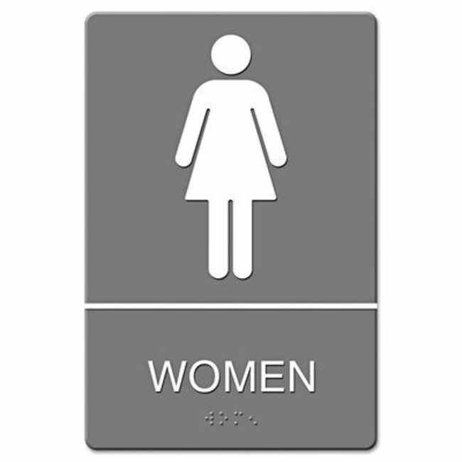 Davsigns Signia ADA, Reads: Women, Gray, International symbols and raised tactile graphics with braille, Molded plastic, 6W x 9H, 6/BX.