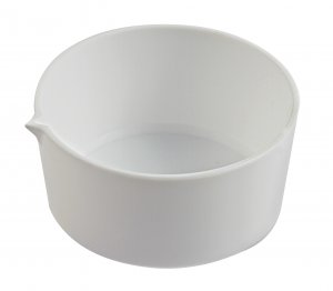 Tall form evaporating dishes with pouring spout are manufactured from pure PTFE with heavy wall. Inert and useable to 260ºC. Smooth internal finish.