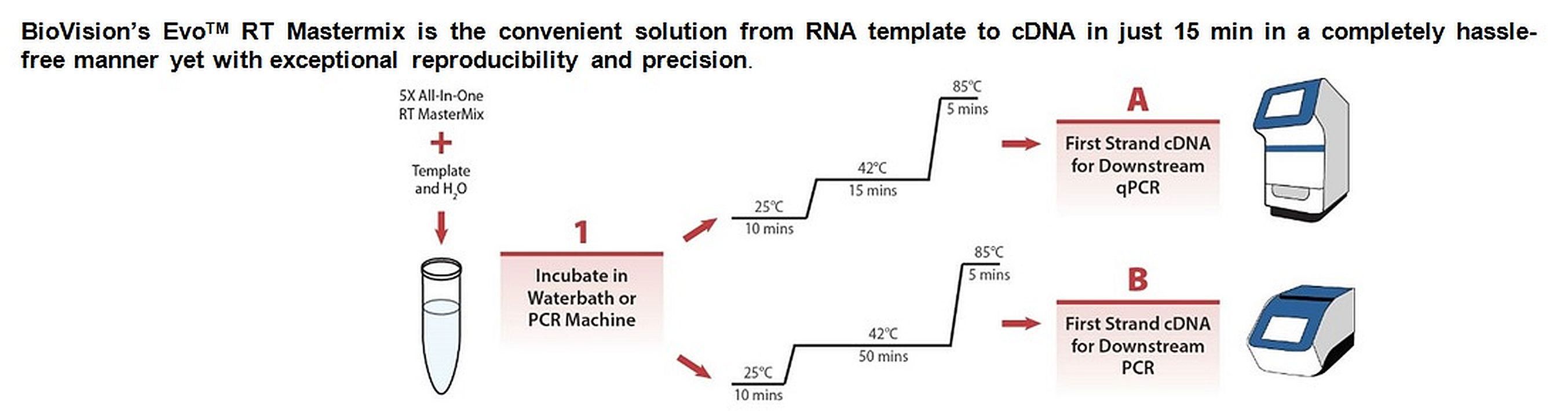 Evo* Rt Mastermix 25Reactions^ Evo* Rt Mastermix, ready-to-use formulation of all the reagents necessary for firststrand cDNA synthesis with the exception of the template. 5X concentrated, Application: Generation of templates for use in RT PCR and QRT PCR, Size: 25Reactio