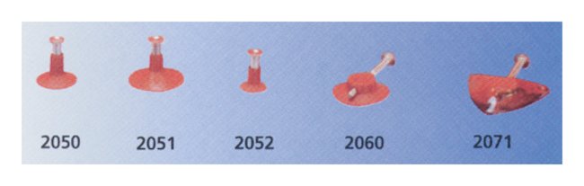The 2000WP Roto-pic™ vacuum cup kit contains cups that are made of silicone rubber with brass fittings. It contains one each of the 2050 (3/8 in.), 2051 (1/2 in.), 2052 (1/4 in.), 2060 (Circo-Vac) and 2071 (Vetro-Vac w/high temp support).