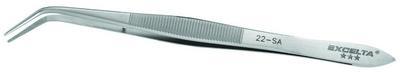 Serrated Broad Tip Angled Tweezers^ 5.5In Tweezer Made From 300 Series Stainless Steel. Double Cut Inside Serrations Provide Better Grip When Handling Small Parts. Outside Finger Serrations For Easy Handling. Alignment Pin Keeps Tips Aligned Under High Strain Applications.