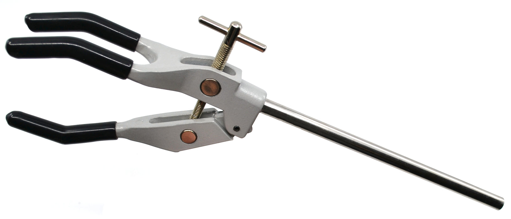 Jaws are longer and opening 100 mm. Overall length 25 cm. 3 Prong clamp, a design different than Cat. no. CH0684. Jaws are longer and opening 100 mm. Overall length 25 cm.