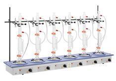 Electromantle With Stirrer For Soxhlet Extraction 6 recess, 1000ml^ Mantle, 2100 watts. For soxhlet and extraction tests. Individually controlled recesses. maximum temperature: 450[degree]c. Dual controller stirring module with variable speeds, 50-1000rpm. 115v. csa.