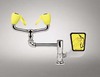 Deck Mounted Eye Wash^ Left-handed operation. Can be mounted in countertops up to 3.1cm thick. Water can escape down sink drain. Activated by stainless steel push handle, twin spray outlets provide 2.5 GPM of aerated water. Unit swivels 90[degree]. Meets ANSI Z358.1-1990 standard.