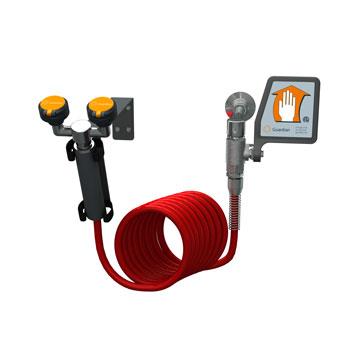 Application: Dual purpose eyewash/drench hose for wall mounting. Unit meets the provisions of ANSI Z358.1 - 2014 as both an eyewash and a drench hose. Unit may be left in the mounting bracket for use as a fixed eyewash, leaving user’s hands free. Alternatively, unit may be removed for use as a drench hose to rinse any part of user’s eyes, face or body.Spray Head Assembly: Two GS-Plus™ spray heads mounted side-by-side. Each head has a “flip top” dust cover, internal flow control and filter to remove impurities from the water flow.Valve: 1/2 " IPS chrome plated brass stay-open ball valve. Valve is US-made with chrome plated brass ball and Teflon® seals.Hose: 12' reinforced nylon retractable coiled hose. 180 PSI maximum working pressure.Mounting: Bracket with spring clips to hold unit on wall. Clips assure that spray heads face forward at all times.Supply: 3/8 " NPT female inlet.Sign: ANSI-compliant identification sign.Quality Assurance: Unit is completely assembled and water tested prior to shipment.