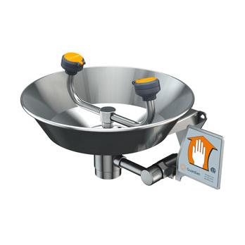 Application: Eyewash for wall mounting. Constructed entirely in stainless steel. Ideal for use in highly corrosive environments and clean room applications. Two GS-Plus™ spray-type spray heads deliver a flood of water for rinsing eyes.Spray Head Assembly: Two GS-Plus™ spray heads. Each head has a “flip top” dust cover, internal flow control and filter to remove impurities from the water flow.Valve: 1/2 " IPS stainless steel stay-open ball valve. Valve has stainless steel ball and Teflon® seals.Bowl: 11-1/8 " diameter stainless steel.Mounting: Heavy duty stainless steel wall bracket.Supply: 1/2 " NPT female inlet.Waste: 1-1/4 " NPT female outlet.Sign: ANSI-compliant identification sign.Quality Assurance: Unit is completely assembled and water tested prior to shipment.