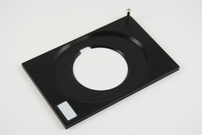 Adapter^ FCS2 SBS adapter, A modification to a FCS2 where the original dovetail is removed and a SLAS/SBS sized plate is installed so that the FCS2 can be used on scopes that accommodate multi-well plates.