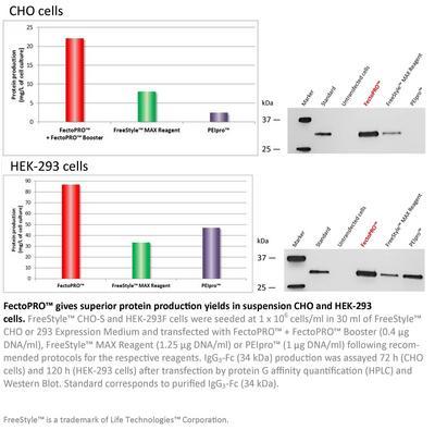 DNA transfection reagent^ FectoPRO* DNA transfection reagent 10ml for enhanced Transient Gene Expression in suspension CHO and HEK-293 cells in various serum-free media, using small DNA amount. Increased productivity and low DNA amount.