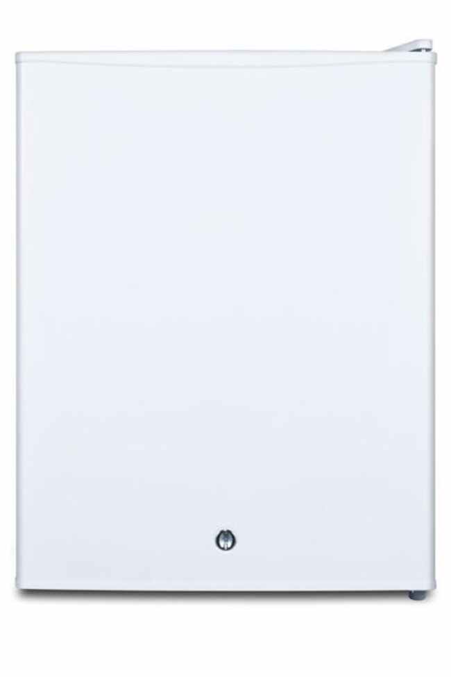 Compact all-refrigerator with automatic defrost, front-mounted lock, and white finish.White glove delivery is not offered by supplier, but inside delivery is available for additional charge