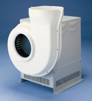 Fiberglass Blower^ For Moderate To Highly Corrosive Fume Hood Applications. Features: Molded Fiberglass Reinforced Polyester Housing, Polypropylene Impeller, Epoxy-Coated Base & Weather Cover, Adjustable Sheave, Flow-Through Vent Holes & Louvers Allow, Self-Adjusting Gravity Belt Tightener