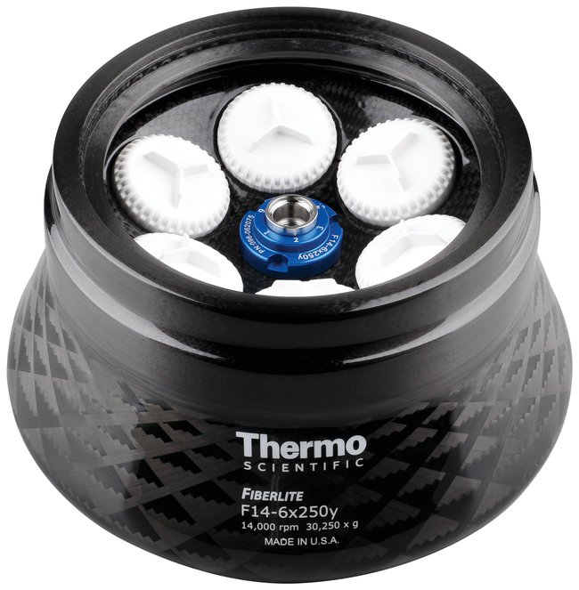 Improve ergonomics and performance with the Thermo Scientific™ Fiberlite™ F14-6 x 250y Fixed-Angle Rotor, ideal for tissue homogenates or smaller volume yeast or bacterial culture separations. This lightweight rotor offers six-place capacity for bottles up to 250mL.Features Lightweight carbon fiber and innovative construction allow unique rotor designs not possible with metal Corrosion and fatigue-resistant construction secures the rotor's structural integrity for unequaled durability Backed by a 15-year warranty Thermo Scientific™ Auto-Lock™ Rotor Exchange: Secure, push-button rotor exchange in less than three seconds Improved safety and convenience No tools required Quickly change rotors and applications Thermo Scientific™ Auto-ID™ Instant Rotor Identification: Immediate identification of a rotor Rotor specifications automatically loaded into centrifuge parameters Shortens run set-up time, improves safety Speed Handle: Accelerates and simplifies rotor lid tightening, ensuring lid is properly attached Easier and safer lifting and carrying of rotors, further enhanced with the lightweight designThis product(s) resides on a Fisher Scientific GSA or VA contract. If you are viewing this page as a nonregistered user, the price(s) displayed is List Price. To view your GSA or VA contract pricing, log in using your account number, or become a registered user by contacting one of our Customer Service teams. You can also view your contract price by searching for this item(s) on GSA Advantage. To place an order, contact Fisher Scientific Customer Service.