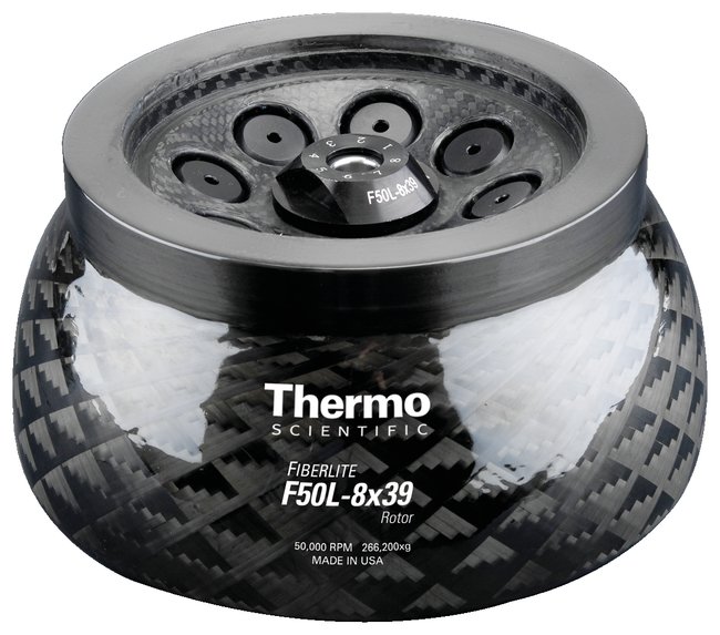 Operate theThermo Scientific™ Fiberlite™ F50L-8 x 39 Fixed-Angle Rotor at speeds up to 50,000RPM and a maximum force of 266,000 xg; a durable, carbon-fiber design optimizes performance over the lifespan of the rotor.Fiberlite rotors:Reduce run-times with higher G-forces achieved with lightweight carbon fiber rotorsEnsure structural integrity with corrosion- and fatigue-resistant designBacked by a 15-year warranty Ordering information:Tube adapters are sold separately, accommodating variety of tubes varying in different capacities; available in packages of two. Contact your sales representative for more information.Compatible with:Thermo Scientific Sorvall™ WX, Sorvall Discovery™ SE Series and Beckman™ Optima L Series centrifuges, Nalgene™ bottles and tubesRecommended for:Differential centrifugation of subcellular particlesThis product(s) resides on a Fisher Scientific GSA or VA contract. If you are viewing this page as a nonregistered user, the price(s) displayed is List Price. To view your GSA or VA contract pricing, log in using your account number, or become a registered user by contacting one of our Customer Service teams. You can also view your contract price by searching for this item(s) on GSA Advantage. To place an order, contact Fisher Scientific Customer Service.