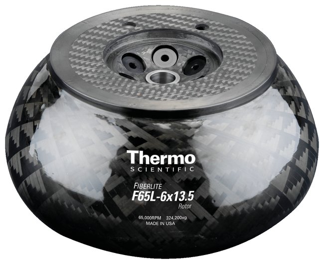 Process 6 x 13.5mL at speeds of 65,000rpm and maximum RCF of 324,000 x g with the corrosion-free carbon fiber Thermo Scientific™ Fiberlite™ F65L-6 x 13.5 Fixed-Angle Rotor.