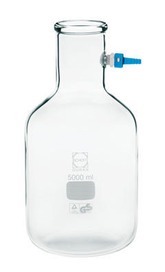 FILTER FLASK, REPL. HOSE, 20L^ FILTER FLASK, DURAN, REPLACEABLE HOSE CONNECTION. 20L. O.D; 290mm; Height: 535mm; Neck I.D; 70.0. Filter flask, un-coated with removable PPN hose connection. The 250ml through 2 Liter are Erlenmeyer shape, while the 3L through 20L are bottle shaped.