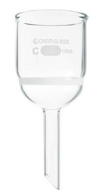 FILTER FUNNEL, BUCHNER^ 600ml. Disc O.D; 90mm; Stem O.D.xLength: 19X100; Height Above Disc: 100mm. Porosity: F. Funnel has a sealed in glass fritted disc of the listed porosity. Useful wherever filter paper or membranes cannot withstand the chemical attack of the filtrate.