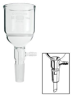 FILTER FUNNEL, BUCHNER, INNER JOINT, IMPROVED^ 600ml. Joint size: 24/40. Porosity: C. Buchner style filter funnel having a lower standard taper inner joint and serrated tubulation for connection to a vacuum source. Disc diameters and height above the disc are the same as CG-1402.
