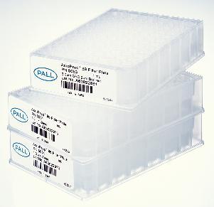 AcroPrep* 96 Filter Plates^ With Mustang S* membrane, natural, 1 mL well. Length: 12.78cm. Width: 8.51 cm. Height: 3.35 cm. Well Bottom Area: 0.25 cm2.