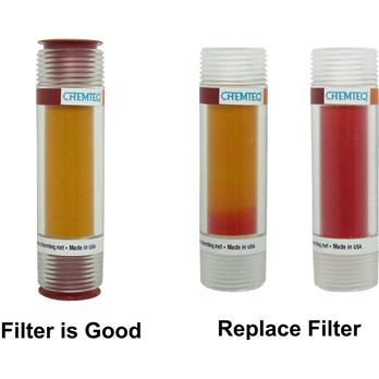 Additional Info Filters Breakthrough Indicators Inline for Acids, Ammonia, Ammonia & Hydrogen Sulfide, Basic Vapors, Formaldehyde, Humidity, Hydrazine, Hydrogen Sulfide and Mercury.The BTI Inline is colorimetric indicator that indicate the saturation and exhaustion of carbon adsorbers and filters.The BTI Inline is suitable for process vent filters associated with toxic gases emission control, distillation, fractionation, thin-film evaporation, solvent extraction, or air or steam stripping operations The indicators are reliable and cost effect means for protection from exposure to toxic gases and vapors in the work place. Indicators change color when carbon adsorbers, carbon scrubbers and filters are saturated with target gases or vapors. Hence alerting the user to replace the exhausted carbon adsorber or filter.Indicators are available for acid vapors (e.g. hydrochloric acid, nitric acid, acetic acid and sulfur dioxide), ammonia, ammonia & hydrogen sulfide, basic vapors (e.g. ammonia and aliphatic amines), Formaldehyde, hydrazine, hydrogen sulfide and mercury. The indicator is easily connected inline with ¾” male, male NPT inlet and outlet.. It is highly sensitive to targeted gases or vapors. It operates at temperatures -20 - 4oC to 50 - 65oC (-4 - 39oF to 122 -149oF) and humidities 5% RH to 85%RH. The indicator is 3.5 inch tall, 1 inch diameter and you can observe the bright vibrant color change from all directions. The unique design of the indicator prevents any color change due to exposure to contaminants in the surrounding environment and changes color only when carbon absorber or filter is saturated.603615617606602608605612