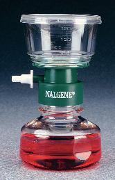 Nalgene MF75 Sterilization Filter Units^ Cellulose Nitrate Membrane, ideal storage, nonpyrogenic, and noncytogenic, gamma radiation-sterilized and individually wrapped for a 5-year sterile shelf life. Padless membrane support minimizes foaming of proteinaceous samples.