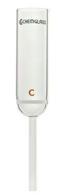 FILTER TUBE, ALLIHN^ Porosity: Fine. Allihn type filter tube with a 30mm O.D. disc. Height above the disc is 100mm, lower stem is 8mm O.D.x55mm in length.