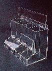 Flip-Top Small Item Dispenser^ Four compartments with hinged doors. Ideal for size separation or for dispensing finger cots and many other items. Can be wall-mounted or left freestanding. Hinged lid. Made of clear 3mm acrylic. Openings feature radius edges for a smooth finish. 44Wx30.5Hx23.5Dcm.