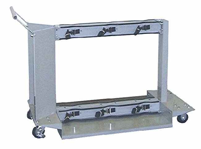 Six-Cylinder Wheeled Cart, All-steel cart holds six cylinders in a vertical position, back-to-back configuration, Each