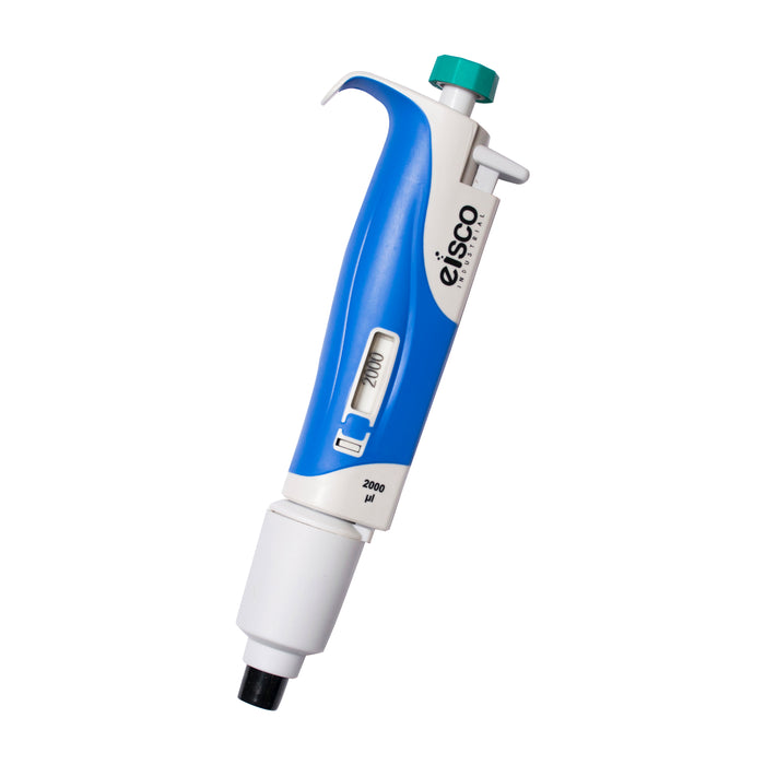 High performance fixed volume micropipette with a 2000uL volume. Simple design allows for easy use.Features a soft and lightweight operation with an ergonomic, soft touch tip ejector designed to minimize hand fatigue, reduce thumb stress and to increase comfort with prolonged use. Fully autoclavable with a durable, autoclavable PVDF tip cone and a slip-resistant thermoplastic eleastomer (TPE) body grip to minimize the transfer of body heat to the micropipette resulting in high accuracy even with continuous use.Entire series of micropipettes (Eisco part numbers: FVM1-15) features color coded plungers for easy identification. Calibration conforms to DIN 12650 & EN-ISO 8655 standard ensuring high accuracy and precision. Calibration report enclosed with every micropipette.