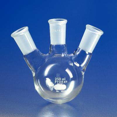 PYREX brand, Distilling, Three Necks, Angle Type, [standard taper] Joints, Flasks, Multiple Neck^ 1000 mL. 24/40. 130 x 185 mm. Multiple neck flasks are used for general laboratory work and especially for organic research.