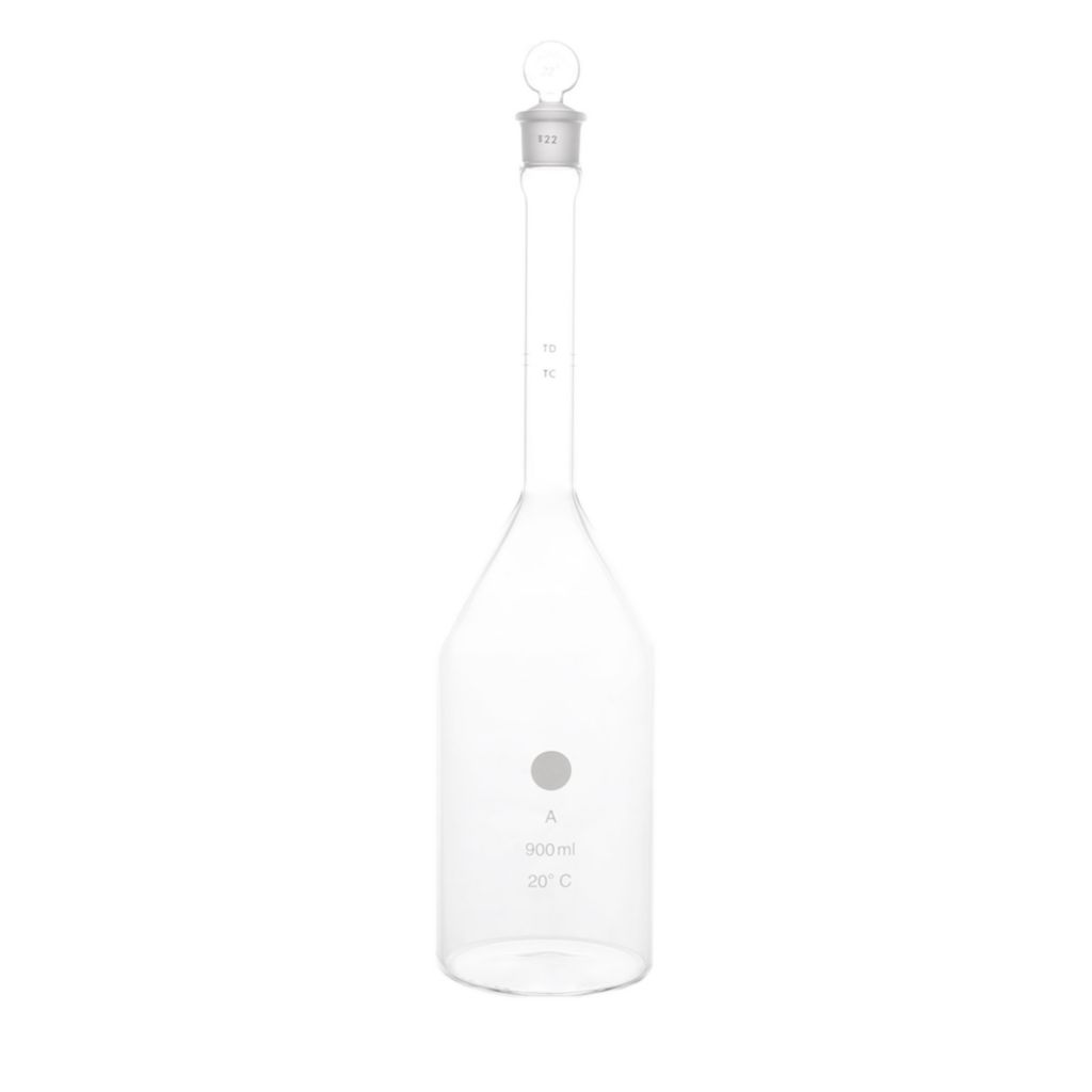 Volumetric Flasks^ Manufactured Specifically For The Pharmaceutical Industry. These Flasks Are Calibrated Both 'To Contain' And 'To Deliver' To Minimise Errors Introduced When Using Graduated Cylinders Or Less Accurate Flasks. Manufactured From Type 1 Borosilicate Glass, The Volumetric Flasks Are Supplied With Ground Glass Stoppers And Feature A Permanently Etched Graduation Line And Marking Spot. Volume: 900Ml Clear Glass Calibrated At 20[Degree) Celsius. Tolerance 'To Deliver': /-0.60Ml. Tolerance 'To Contain': /-0.30Ml.