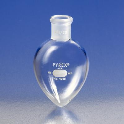 PYREX* Brand Boiling Flasks, Short Neck, Pear-Shaped^ 10ml borosilicate glass flask. Pear-shaped with [Standard Taper] 14/20 joint. Useful for micro-scale distillation.