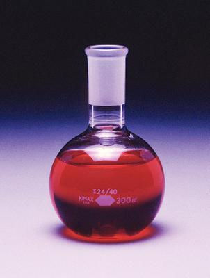 KIMAX* brand Boiling Flasks, Short Neck, Flat Bottom, [Standard Taper] Joint^ 250ml flask. [Standard Taper] 24/40 interchangeable ground glass joint (flask length). Designed from ASTM Specification E1403, Type I, Class 4 requirements.