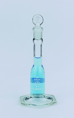 KIMAX* brand Volumetric Flasks, Micro, Cylindrical, Serialized and Certified, [Standard Taper] Stopper, Class A^ 5ml. Tolerance: -0.02ml. [Standard Taper] Ground Glass Stopper: 8. Calibrated to contain. Circular base. Certificate of Graduation Accuracy. ASTM E237, Class A serialized.