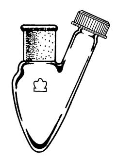 Flask designed for vacuum distillations. Threaded sidearm has an open-top nylon cap, BEVEL-SEAL™, Heavy wall, Cap can be coupled with an o-ring to accommodate a thermometer or a gas inlet tube, A penetrable liner may be used to sample a reaction mixture using a syringe, Supplied complete with one size 010 FKM o-ring and one PTFE-faced silicone liner