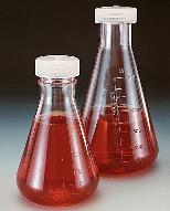 NALGENE* Erlenmeyer Flask, Polycarbonate, with Screw Cap^ 250mL. Cap Size: 38mm. Features excellent clarity and mechanical strength. Polypropylene closure provides dependable seal for use with liquid culture media. Before autoclaving, set cap on top of flask without engaging threads.