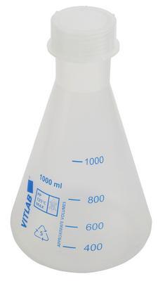 PP Erlenmeyer Flask^ 1000ml capacity Erlenmeyer flasks with screw closure. Translucent, wide mouth flasks with polypropylene screw closures. Excellent chemical resistance. Flasks can also take stoppers. &am