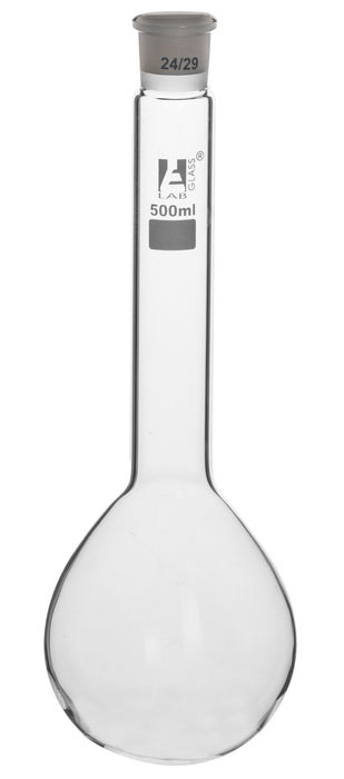 Borosilicate glass, long neck, round bottom, 24/29 socket size. Designed for nitrogen determination as per Kjeldahl method. Conforms to DIN ISO 12360 standard. Flask measures 13" tall and 4.5" width at its widest point.Autoclavable, with superior chemical durability. Low temperature gradient- can withstand high temperatures & thermal shocks. Eisco Labs Borosilicate glass has the following heat tolerances: Strain Point 515°C | Annealing Point 565°C | Softening Point 820°C.Eisco Labs proudly manufactures its own products using state-of-the-art equipment, and following the highest standards of quality control.