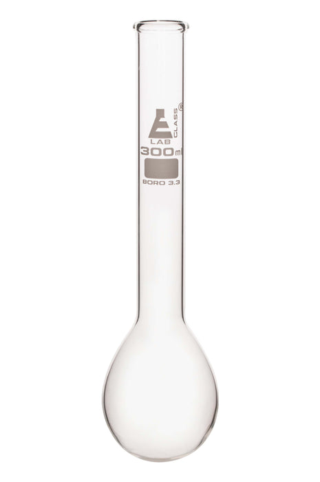 Kjeldahl Flask has a long neck, round bottom, and is made from industrial quality borosilicate 3.3 glass. Designed for nitrogen determination as per Kjeldahl method. Conforms to DIN ISO 12360 standard. Flask measures 11.8" tall, neck measures 8" long and has a diameter of 1.2", round bottom diameter measures 3".Autoclavable, with superior chemical durability. Low temperature gradient- can withstand high temperatures & thermal shocks. Eisco Labs Borosilicate glass has the following heat tolerances: Strain Point 515°C | Annealing Point 565°C | Softening Point 820°C.Eisco Labs proudly manufactures its own products using state-of-the-art equipment, and following the highest standards of quality control.Each product is carefully designed by a team of laboratory professionals and experienced engineers with quality and durability in mind. They are manufactured with only the highest grade, raw materials and according to international quality standards to ensure that they can withstand use in even the toughest laboratory environments.