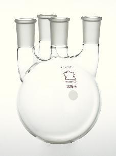 Flasks Distilling Four Neck Round Bottom Heavy Wall^ Capacity (mL); 1000. Center [standard taper] Joint; 24/40. Side [standard taper] Joints; 24/40. Approx. Dia. (mm); 130 Four neck round bottom flask with [standard taper] outer joints, all vertical.