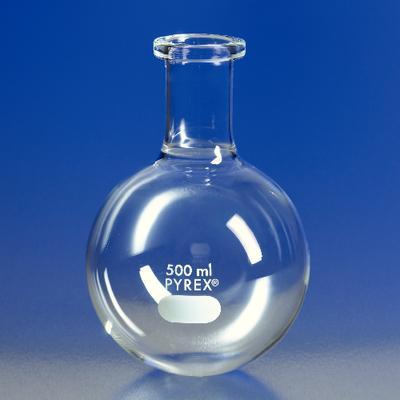 PYREX brand,Boiling,Round Bottom,Short Ring Neck, Flasks, Boiling^ 12000 mL. 295 x 378 mm. Stopper No.11. Corning provides a number of PYREX brand flasks for special purpose applications. These range from special Kjeldahl boiling flasks to calibration cylinder and flask sets.