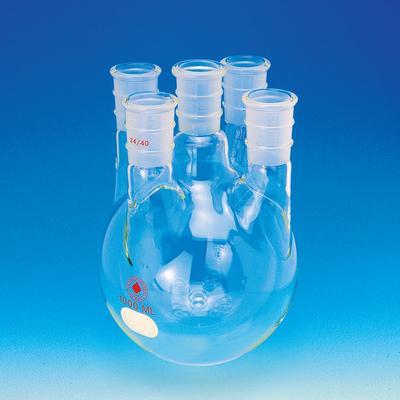6L ROUND BOTTOM FLASK, STANDARD WALL, 24/40 CENTER, (4) 24/40 SIDES^