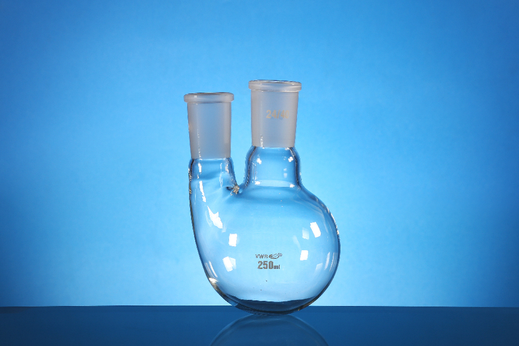 Ext.Ø: 64 mm, Durable round bottom flasks with 2 parallel necks., Manufactured from ASTM E438 Type 1 Class A borosilicate 33 expansion glass. The flasks feature uniform wall thickness which makes them ideal for heating., 02_BulletPoint: Good temperature resistance | Chemically resistant | Uniform wall thickness, UL Listed: Y, Capacity: 100 ml, Height: 118 mm, Cat. No.: 76012-802, Center neck [ST] joint: 24/40, Side neck ST joints: 24/40, Final SAP Desc Link: 6058019, SAP Description Status: Ready, Ext.Ø: 85 mm, Durable round bottom flasks with 2 parallel necks., Manufactured from ASTM E438 Type 1 Class A borosilicate 33 expansion glass. The flasks feature uniform wall thickness which makes them ideal for heating., 02_BulletPoint: Good temperature resistance | Chemically resistant | Uniform wall thickness, UL Listed: Y, Capacity: 250 ml, Height: 140 mm, Cat. No.: 76012-804, Center neck [ST] joint: 24/40, Side neck ST joints: 24/40, Final SAP Desc Link: 6058019, SAP Description Status: Ready, Ext.Ø: 105 mm, Durable round bottom flasks with 2 parallel necks., Manufactured from ASTM E438 Type 1 Class A borosilicate 33 expansion glass. The flasks feature uniform wall thickness which makes them ideal for heating., 02_BulletPoint: Good temperature resistance | Chemically resistant | Uniform wall thickness, UL Listed: Y, Capacity: 500 ml, Height: 158 mm, Cat. No.: 76012-806, Center neck [ST] joint: 24/40, Side neck ST joints: 24/40, Final SAP Desc Link: 6058019, SAP Description Status: Ready, Ext.Ø: 130 mm, Durable round bottom flasks with 2 parallel necks., Manufactured from ASTM E438 Type 1 Class A borosilicate 33 expansion glass. The flasks feature uniform wall thickness which makes them ideal for heating., 02_BulletPoint: Good temperature resistance | Chemically resistant | Uniform wall thickness, UL Listed: Y, Capacity: 1000 ml, Height: 185 mm, Cat. No.: 76012-808, Center neck [ST] joint: 24/40, Side neck ST joints: 24/40, Final SAP Desc Link: 6058019, SAP Description Status: Ready, Ext.Ø: 165 mm, Durable round bottom flasks with 2 parallel necks., Manufactured from ASTM E438 Type 1 Class A borosilicate 33 expansion glass. The flasks feature uniform wall thickness which makes them ideal for heating., 02_BulletPoint: Good temperature resistance | Chemically resistant | Uniform wall thickness, UL Listed: Y, Capacity: 2000 ml, Height: 215 mm, Cat. No.: 76012-810, Center neck [ST] joint: 24/40, Side neck ST joints: 24/40, Final SAP Desc Link: 6058019, SAP Description Status: Ready, Durable round bottom flasks with 2 parallel necks., Manufactured from ASTM E438 Type 1 Class A borosilicate 33 expansion glass. The flasks feature uniform wall thickness which makes them ideal for heating., 02_BulletPoint: Good temperature resistance | Chemically resistant | Uniform wall thickness, Final SAP Desc Link: 6058019, SAP Description Status: Ready