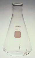 PYREX* Brand Baffled Flask, Erlenmeyer^ Stopper No. 8.5. Heavy tooled rim for maximum durability. The baffle design promotes optimal and consistent solution agitation when used with flask shakers. Volume: 1000mL. 130 O.D.x220Hmm.