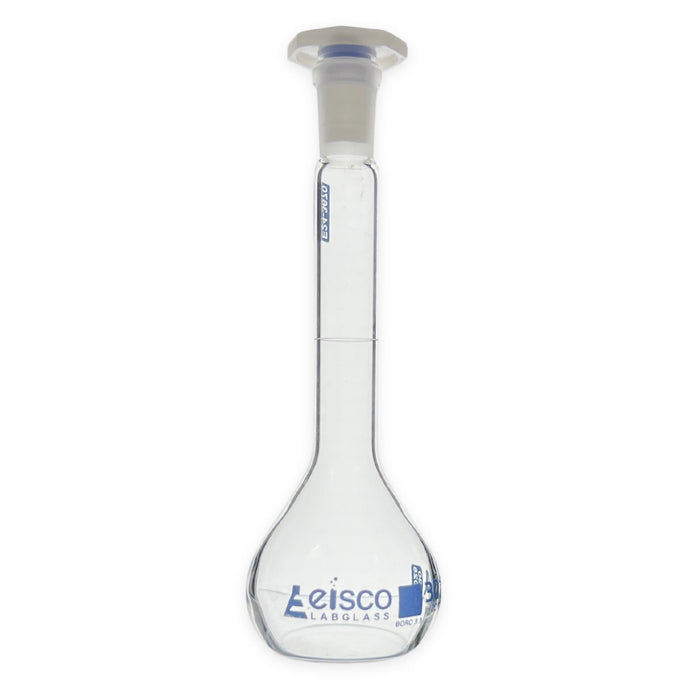 The Eisco Labs 30mL Class A Volumetric Flask with NS 10/19 stopper is perfect for precise solution preparation in professional laboratories. Made from borosilicate glass and featuring an individual work certificate confirming Class A standards, it ensures accurate volume measurement for analytical chemistry, pharmaceutical research, and more. 5" height with stopper1.5" wide flask1" wide stopper9mm inner diameter neck14mm outer diameter neck