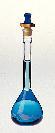 KIMAX* brand Volumetric Flasks, Polyethylene Stopper, Class B^ 100ml. Tolerance: -0.16ml. Stopper: 13. Calibrated to contain. Provided with yellow and blue closed-bottom linear, high density polyethylene stopper in the [Standard Taper] neck. ASTM specification E288, Class B requirements.